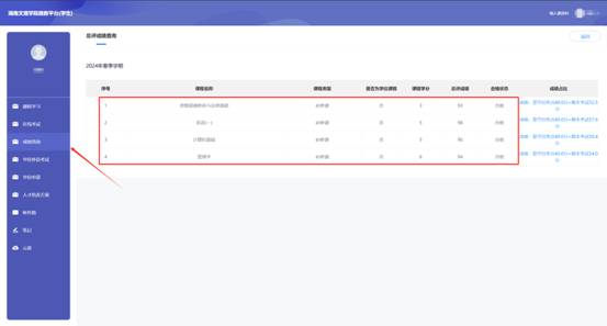 点击成绩查询,跳转之后可以查看当前所有课程是否合格